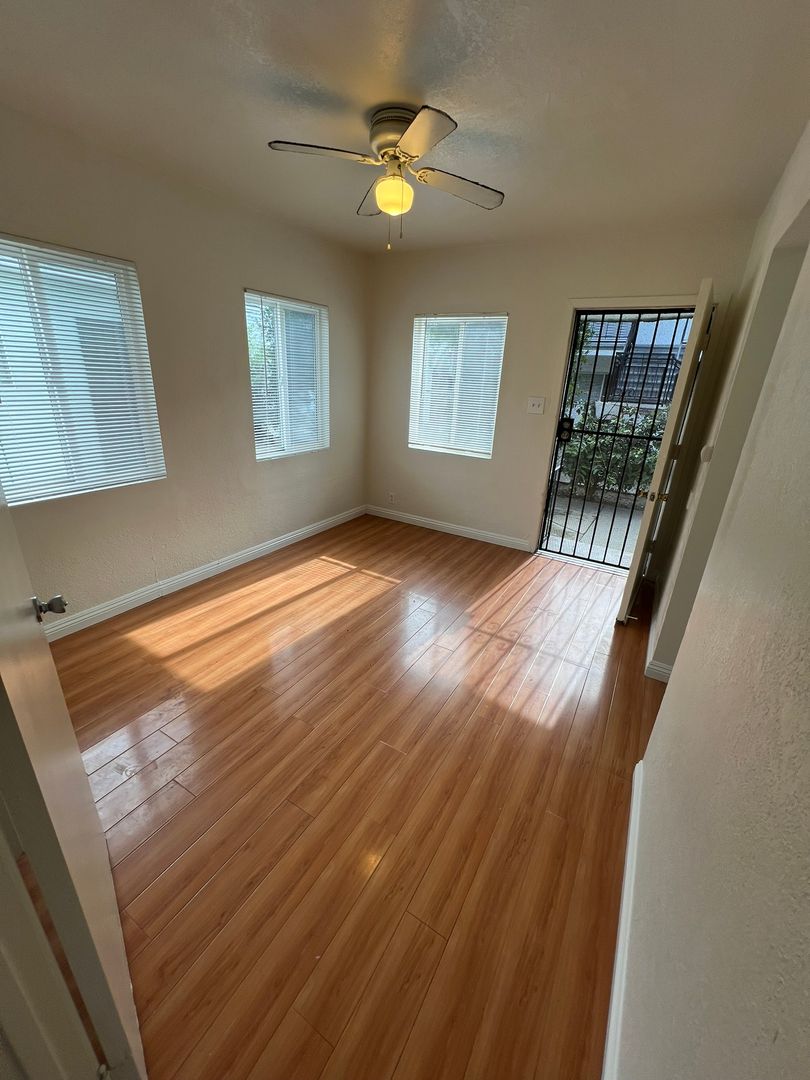 Welcome to your new home in Long Beach, CA! This charming 1-bedroom, 1-bathroom cottage is one of four unique residences on the lot, each offering a distinct living experience. The interior boasts hardwood flooring throughout, adding a touch of elegance and warmth to your living space. The kitchen and bathroom are beautifully tiled, enhancing the overall aesthetic of the home. The kitchen comes equipped with a stove and refrigerator, ready for your culinary adventures. Ceiling fans are installed for your comfort, ensuring a pleasant atmosphere throughout the seasons. As an added convenience, a one (1) car garage is included, providing secure parking or additional storage space. Experience the perfect blend of comfort and style in this Long Beach gem.