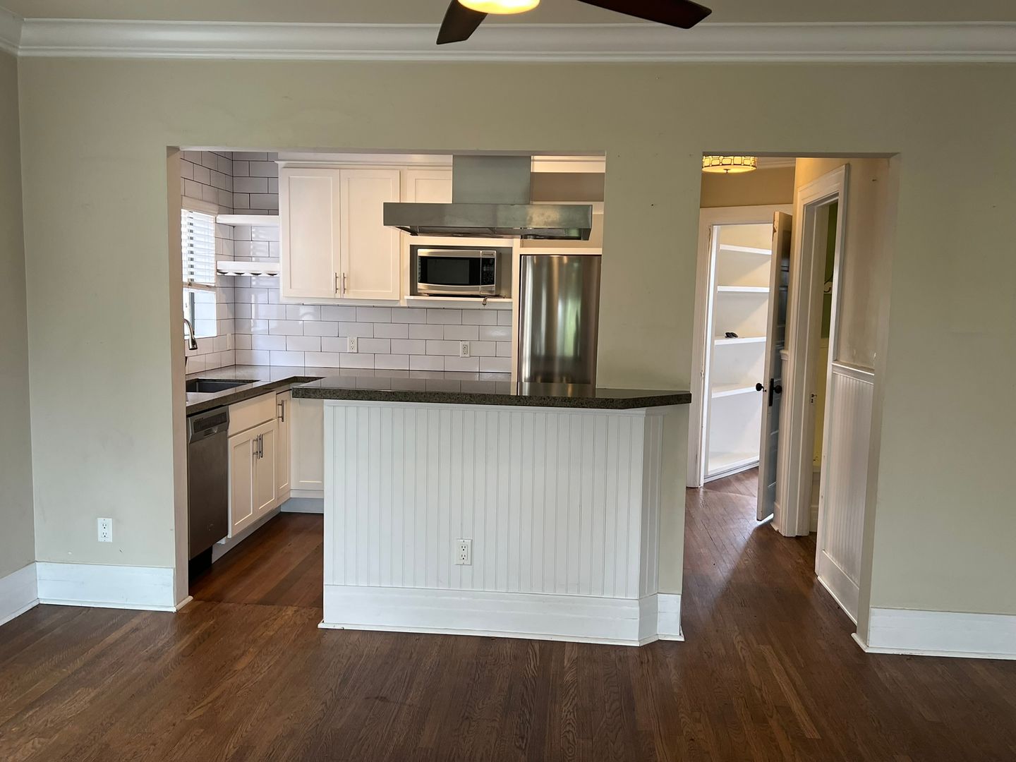 • Stove, microwave, dishwasher, refrigerator, washer and dryer included